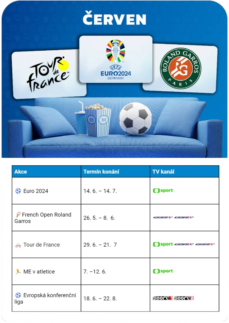 Letošní léto je opravdu nabité sportem, a proto jsme pro vás připravili přehled nejdůležitějších akcí, kde se dozvíte, na kterém TV kanálu lze událost sledovat. A abyste si to maximálně užili, máme pro vás extra nabídku 14 sportovních TV stanic ZDARMA.